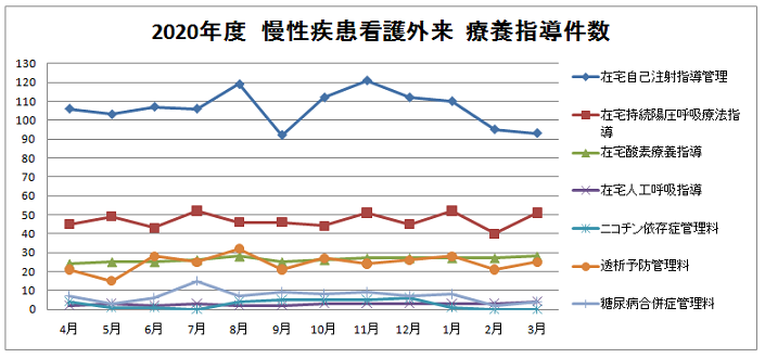 生活習慣病や糖尿病の合併症予防のための栄養指導や生活指導、呼吸器疾患により在宅酸素をしている患者様の悪化予防のための生活指導を専門の看護師が行います。
