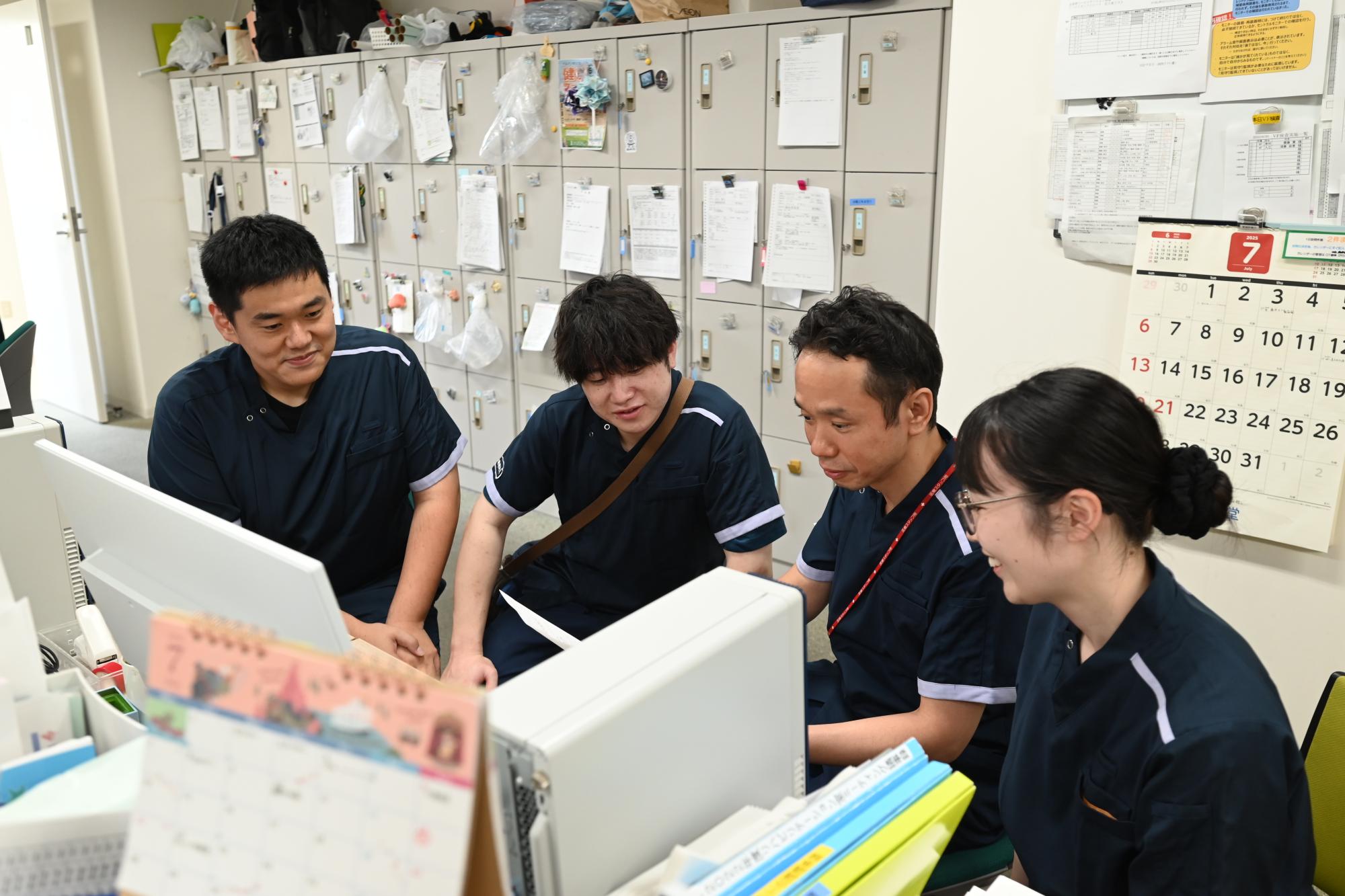 チームごとに症例検討会を実施し、リハビリテーション治療の質向上を図るとともに 全スタッフが問題点や治療方針、今後の方向性などを共有します。