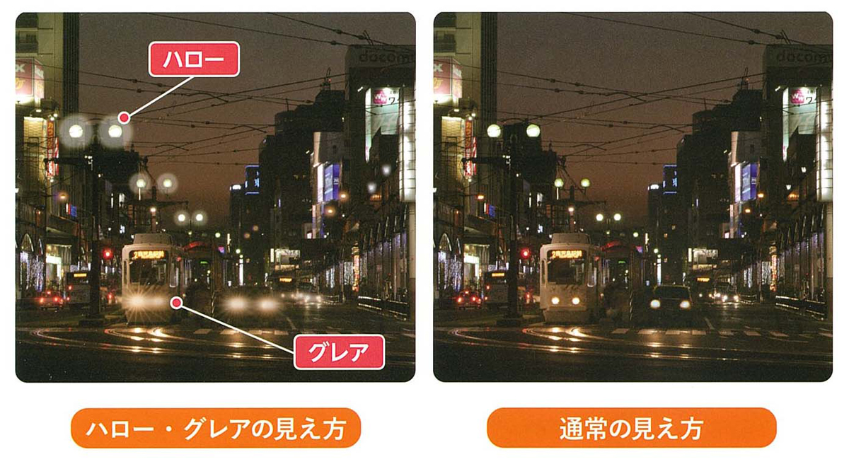 グレア : 高輝度のものが視野内にあるために起こる感覚