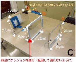 - スタンド付鏡 (c) 設置容易。割れると危険(*1,200円程度)
