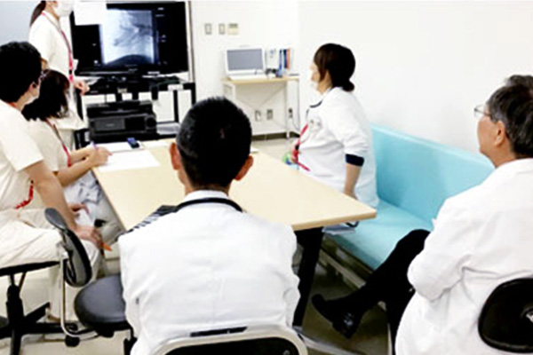 嚥下造影検査を、医師、言語聴覚士、放射線技師が連携して実施しています。
