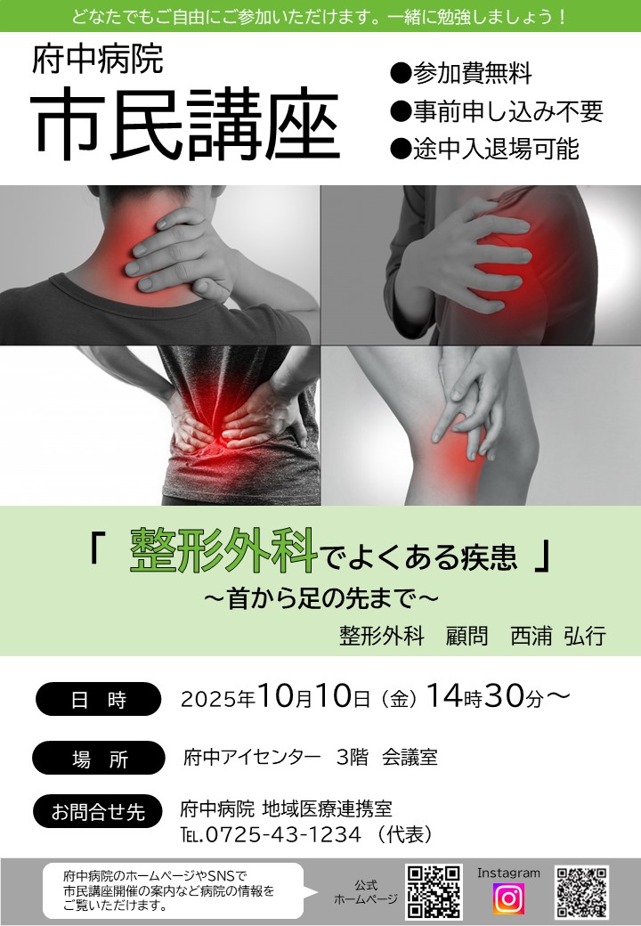 終了 整形外科でよくある疾患 ~首から足の先まで~ 整形外科 顧問 西浦 弘行