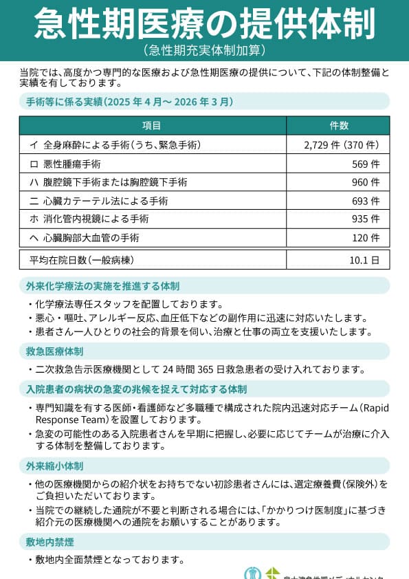 | 急性期医療の提供体制(急性期充実体制加算) |