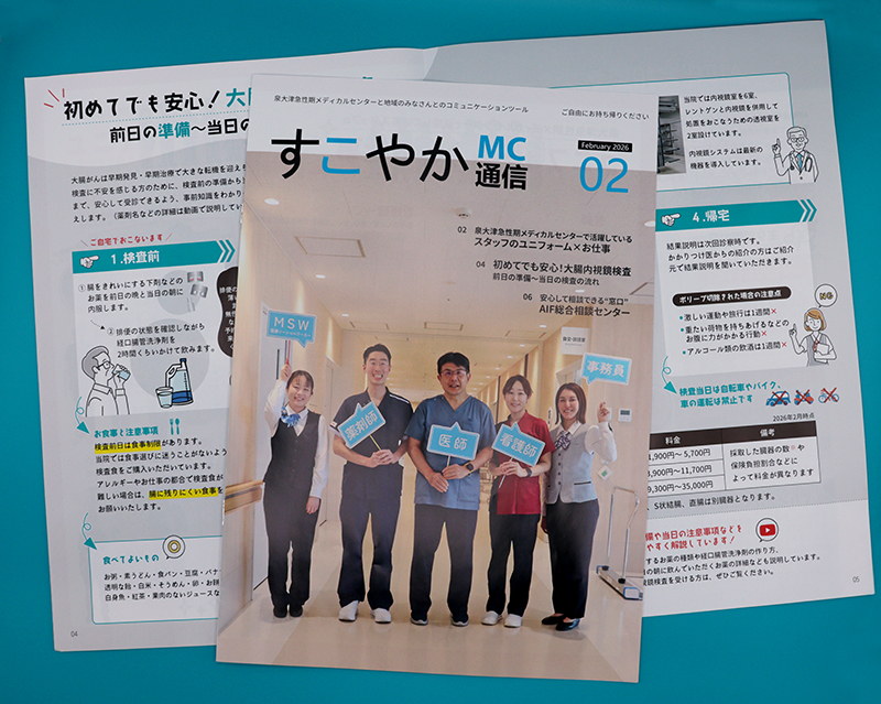 2026.02.02 一般・患者さん向け お知らせ 広報誌「すこやかMC通信vol.2」を発刊しました 今回の内容はこちら 泉大津急性期メディカルセンターで活躍しているスタッフのユニフォーム×お仕事 初めてでも安心!大腸内視鏡検査~前日の準備から当日の検査の流れ~ 安心して相談できる“窓口”AIF総合相談センター 詳細はこちら 一覧を見る お知らせ 一般・患者さん向け すべて お知らせ 休診情報 メディアでの紹介 医療関係の方向け すべて お知らせ 採用情報 すべて お知らせ 説明会・見学会 臨床研修