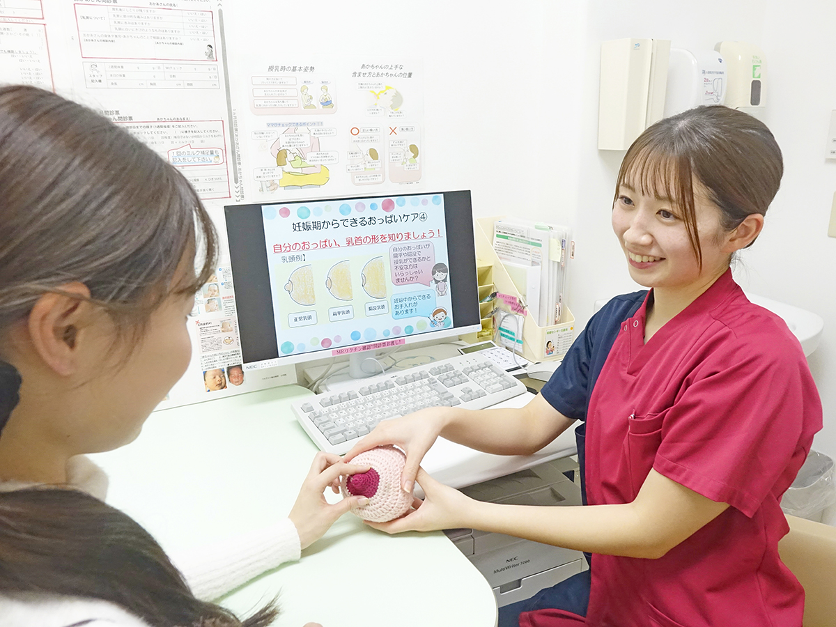 妊娠中から助産師による保健指導時間を設け、ご家族の生活に合わせた健康教育を実践しています。妊娠、出産は、治療が優先されるときがあります。併設される産科手術室での迅速な体制を整え、同フロアにあるNICU(新生児集中治療室)と協力し、新しいご家族の誕生を安心かつ安全な出産を心掛けています。出産後は、おかあさんとお子さんが一緒に過ごすことができる母子同室を取り入れ、母乳育児支援を実践、産後の家庭訪問で継続した支援を行っています。