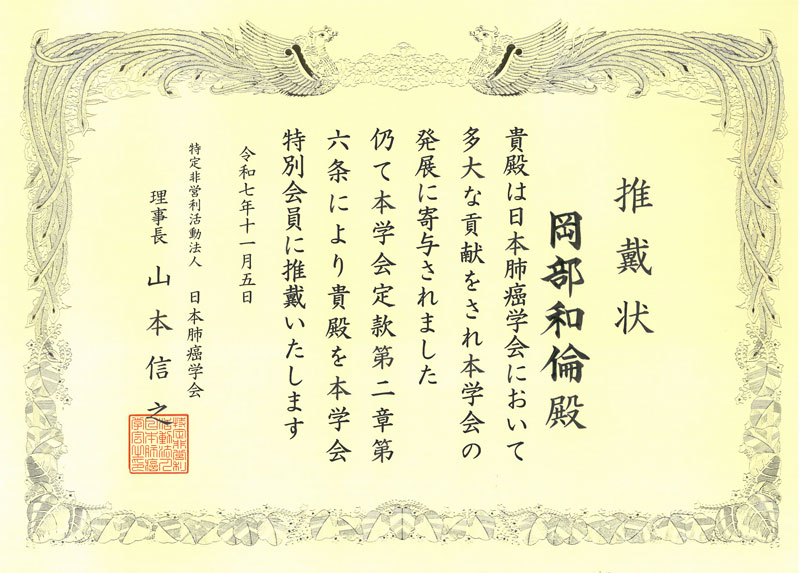 ㊺ 2025年11月、日本肺癌学会から特別会員に推戴していただきました。