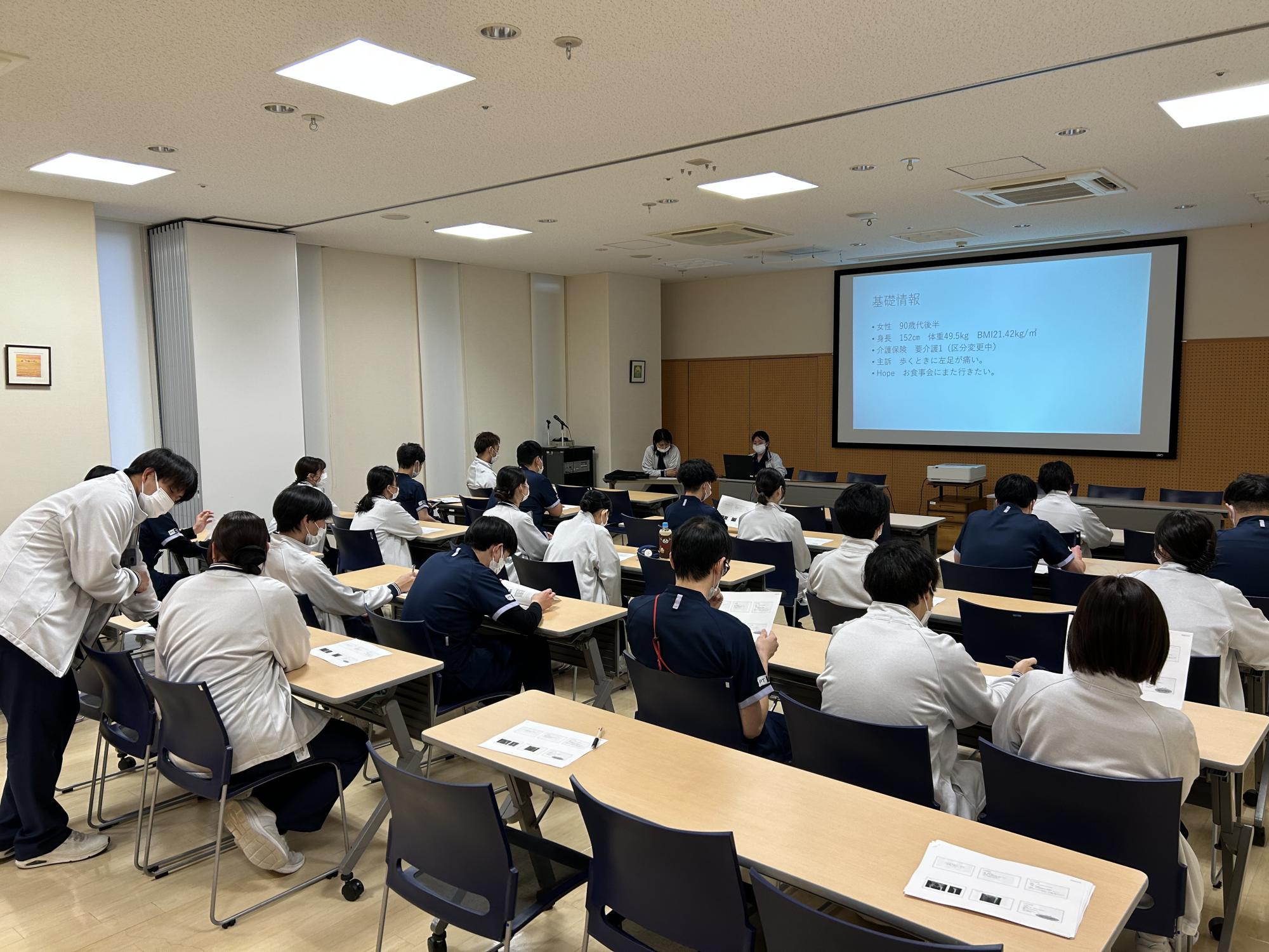 チームごとに症例検討会を実施し、リハビリテーション治療の質向上を図るとともに 全スタッフが問題点や治療方針、今後の方向性などを共有します。