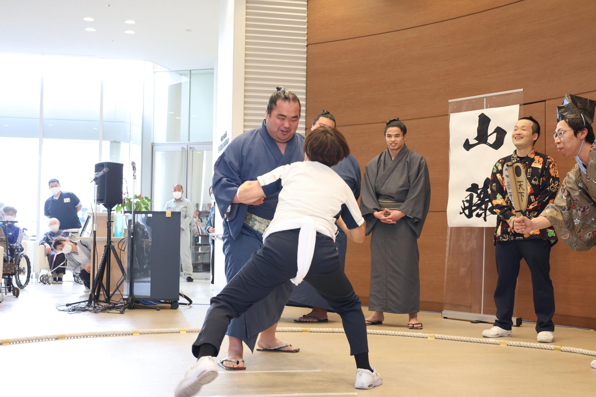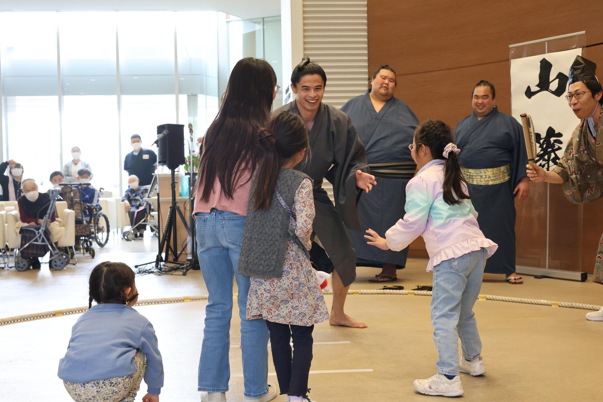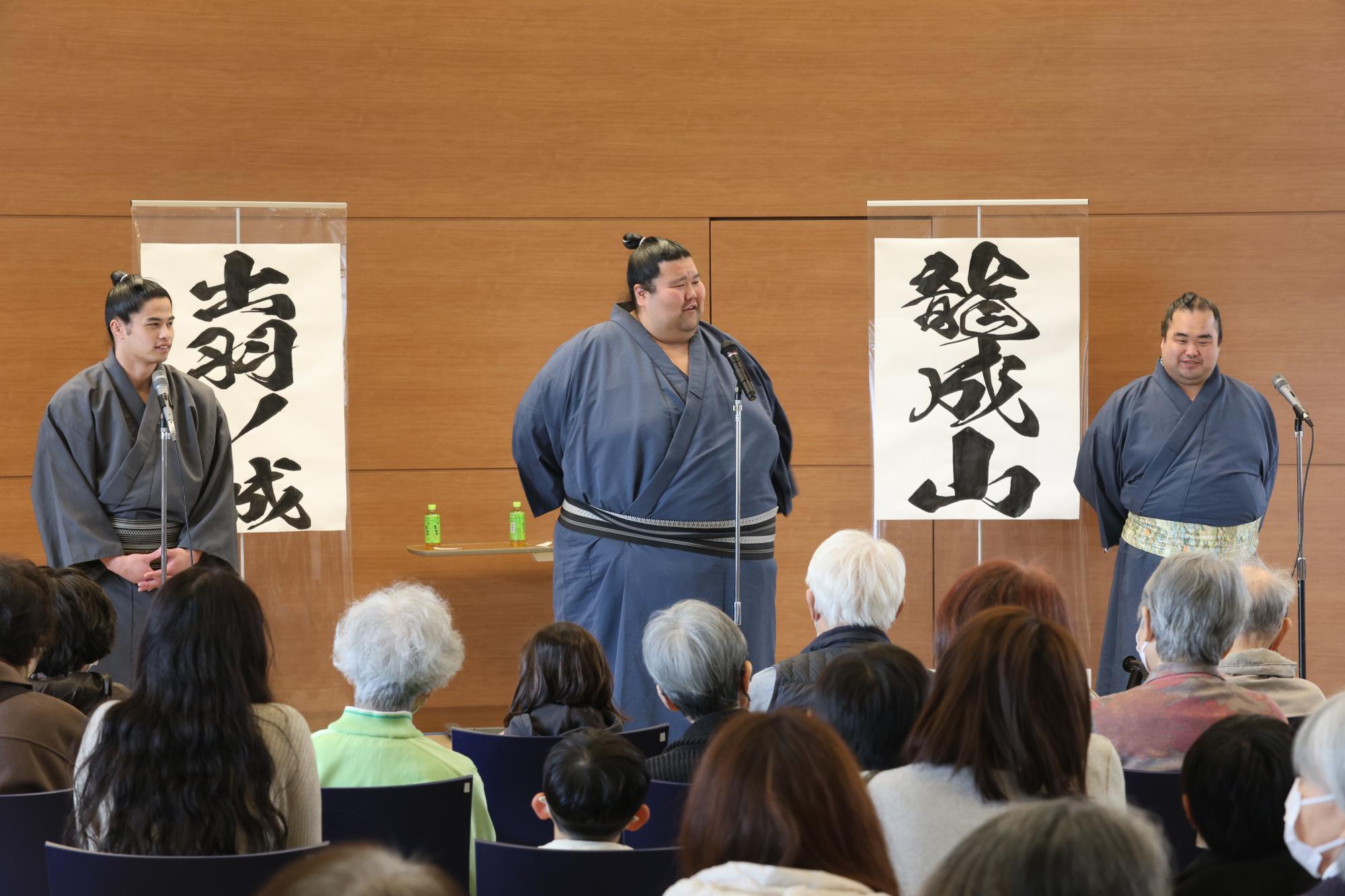 2026.03.26 一般・患者さん向け 終了 出羽海部屋 力士との交流会を開催しました 大阪場所を終えられたばかりの出羽海部屋 山藤関、龍成山関、そして出羽ノ城関の3名の力士の方々が慰問交流会にお越しくださいました。 日時 2026.03/26 木 大阪場所を終えられたばかりの出羽海部屋 山藤関、龍成山関、そして出羽ノ城関の3名の力士の方々が慰問交流会にお越しくださいました。地域の子どもたちを含め当施設に入院・入所、あるいは通院で利用されている様々な年代の皆様まで幅広くご参加いただき、来場者数は300名を超える大変な賑わいとなりました。普段はテレビの中でしか拝見できない力士の皆様の圧倒的な存在感と、心温まるお人柄のおかげで、来場者の顔には笑顔があふれ、特に子どもたちや高齢者の方々の生き生きとした表情がとても印象的でした。 一覧を見る イベント・セミナー 一般・患者さん向け すべて 市民講座 イベント 医療関係の方向け すべて セミナー