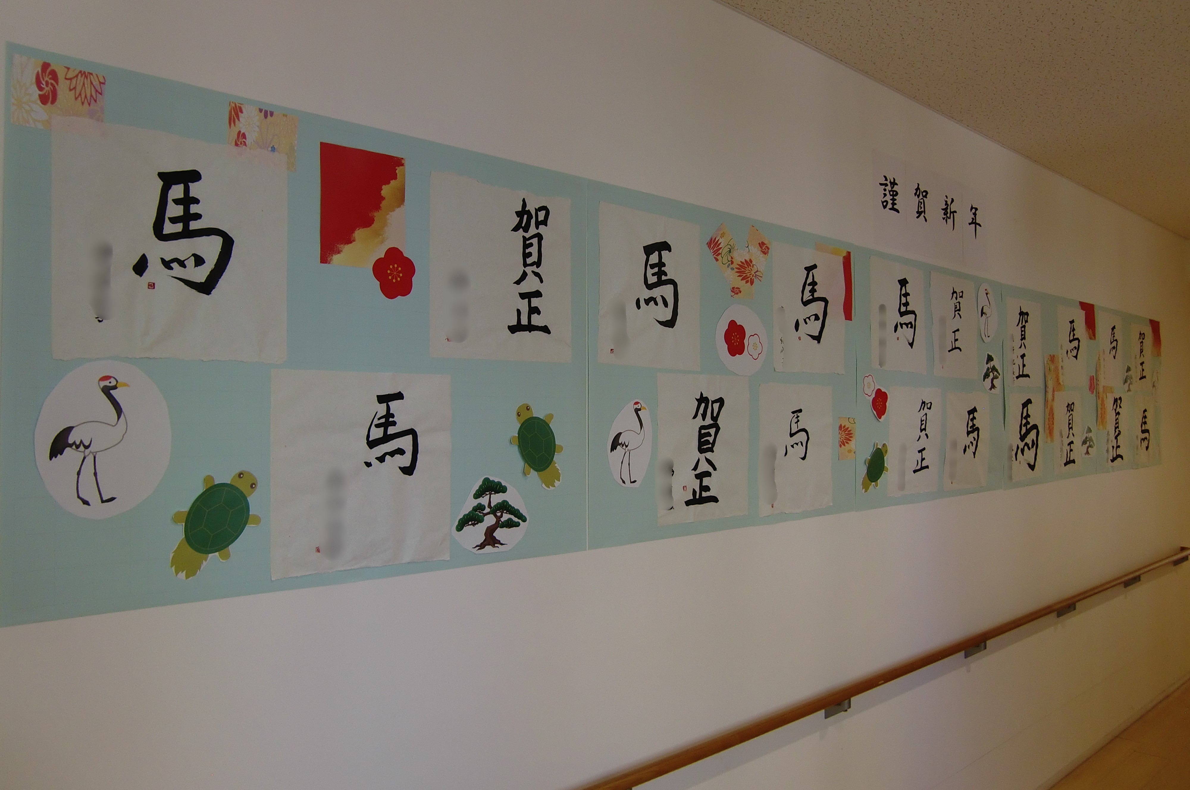 明けましておめでとうございます。 今年は60年に一度の「丙午」です。何事もウマくいく年にしましょう♪ 書初めを行い、展示しました!みなさん素晴らしい~~!(^^)!