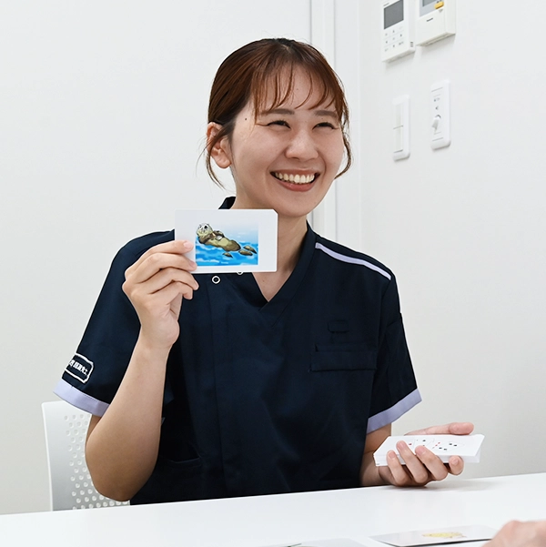 コミュニケーションや摂食嚥下に関する障がいに取り組み、患者さんが自信を持って生活できるようサポートしています。訓練や検査だけでなく、自然な会話の中で「話せた」という経験を大切にし、患者さんの自立を促進しています。生活やQOLに焦点を当てた訓練を提供するため、さらに勉強し続けています。やりがいを感じながら成長できる環境が整っており、患者さんと共に喜びを分かち合うことができる仕事です。