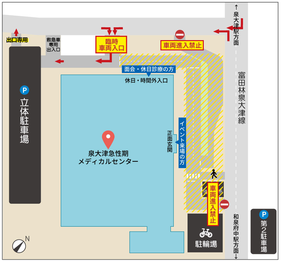 - 駐車場は「救急受診の方」および「面会に来られた方」を優先とさせていただきます。あらかじめご了承ください。