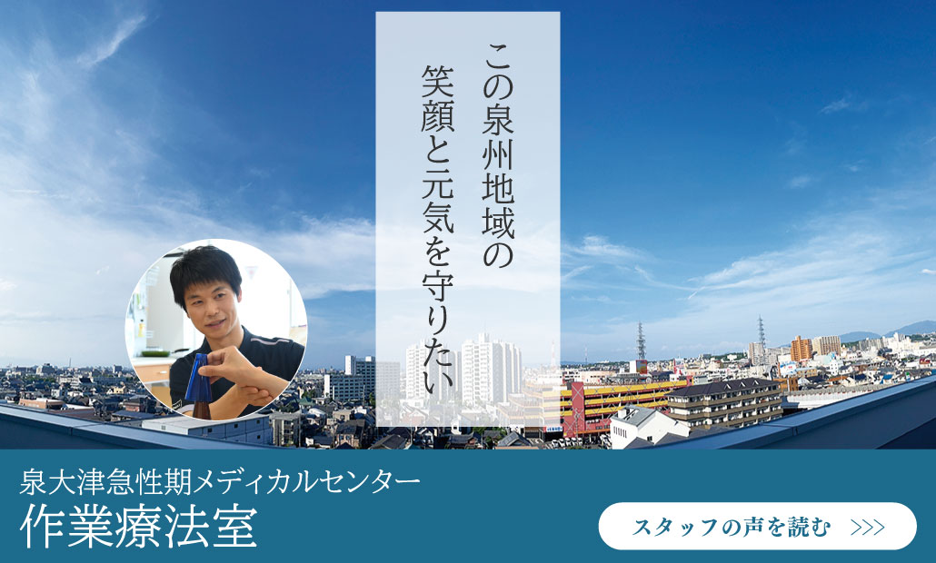 私たち泉大津急性期メディカルセンター作業療法室は、この泉州の笑顔の物語をともに育む、あなたという人生のパートナーです。